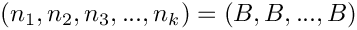 (n_1,n_2,n_3,...,n_k) = (B,B,...,B)